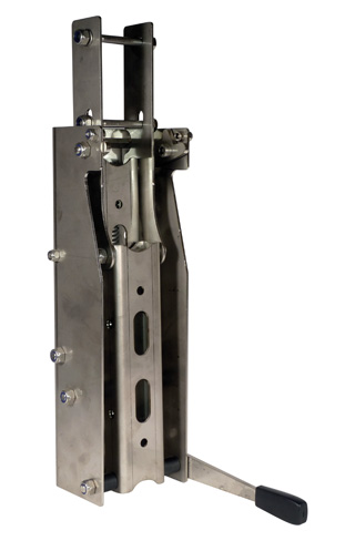 Made of galvanised steel it can be applied on any Polmac mixer for installation on any type of sprayer. It can be extended up to a maximum height of 75 centimetres. The returning action is facilitated by a return spring, and it is fitted with a safety hook for the closed position.