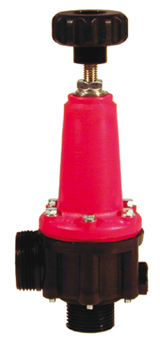 POLMAC AUTOMATIC SPRING-LOADED MAXIMUM PRESSURE SAFETY VALVES. These valves are made of a plastic (nylon and fiberglass) which is particularly resistant to liquid chemical products and even abrasive liquid chemical products. If they are used as safety valves, they guarantee a constant pressure whenever it is not necessary to continuously regulate the working pressure. Any excess liquid bypasses the valve and allows it to maintain a constant line pressure. Available in the membrane version (for better regulating accuracy) and the piston version (to deaden the effect of vibrations).